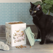 Bewaar de favoriete lekkernijen van uw kat in een prachtig geïllustreerd snoepblik. Met het 'Cattitude' kattenontwerp op de voor- en achterkant, bijpassende zijkanten met patroon en een Wrendale groen deksel.