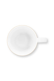 Een porseleinen beker met Pip's favoriete Love Birds dessin. In het midden een medaillon met een geschilderd roodborstje. Elke beker is gedecoreerd met verschillende luxe elementen, zoals de gouden afwerking op de handgreep.