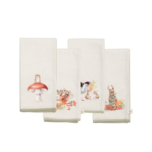 Wrendale Designs Garden Friends Servetten - Set van 4 - 100% Katoen - 23 cm x 12 cm
