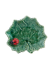 Bordallo Pinheiro Folhas Serveerschaaltje - Kruiskruidblad - Lieveheersbeestje - Groen/Rood/Zwart - Aardewerk - 14 cm