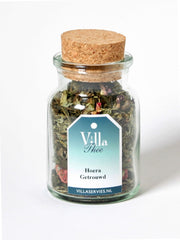 De thee zit in een mooi glazen potje verpakt.